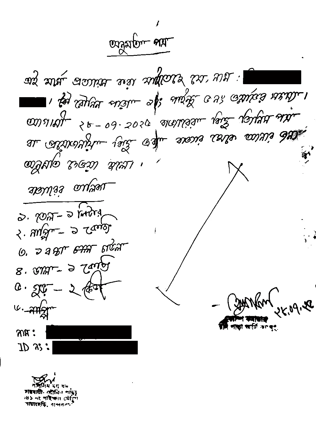 আরেক স্থানীয় সেনা কমান্ডারের কাছে পান পাতা বিক্রি করার জন্য বাজারে যাওয়ার অনুমতি চাওয়া হয়েছে আরেকটি চিঠিতে; এই চিঠিতেও সেনা অধিনায়কের স্বাক্ষরযুক্ত অনুমোদন রয়েছে।